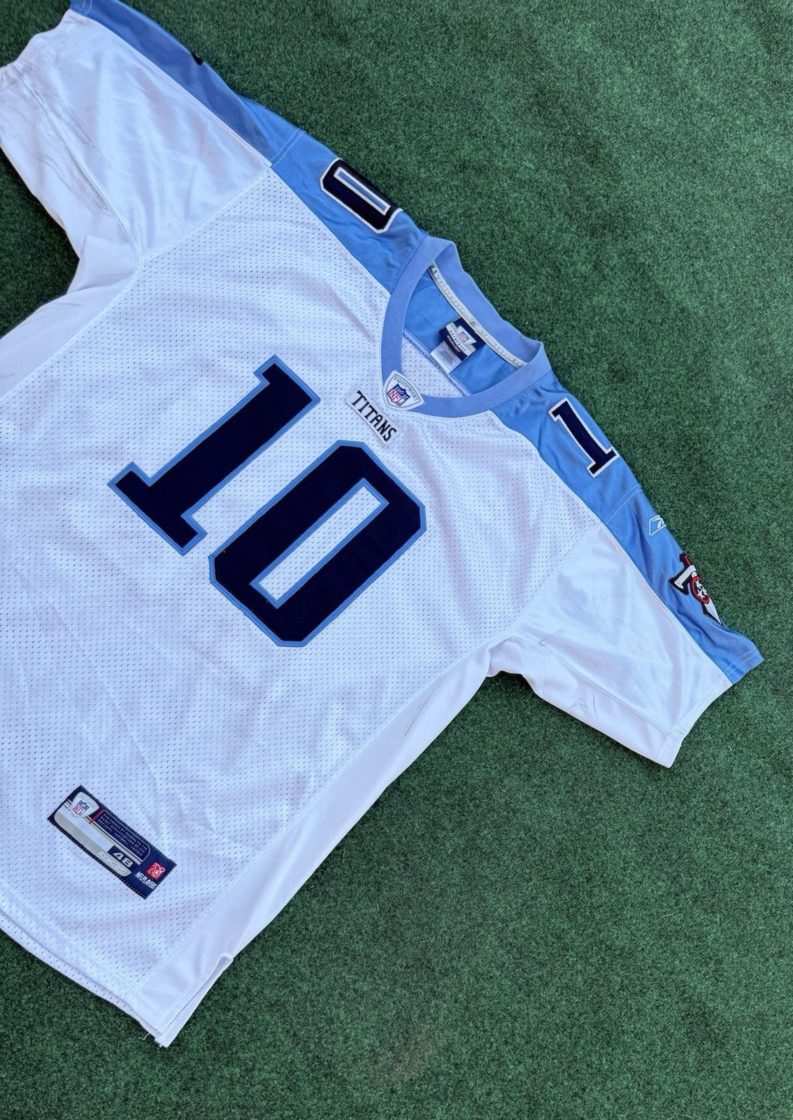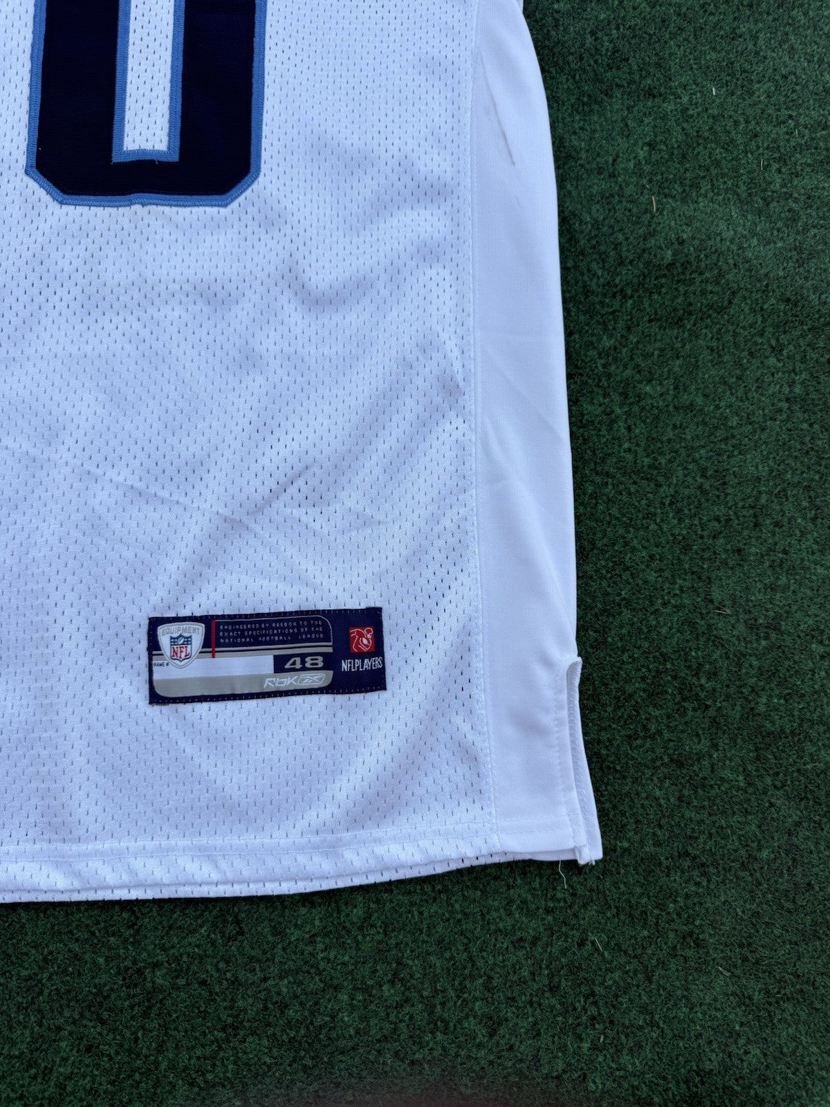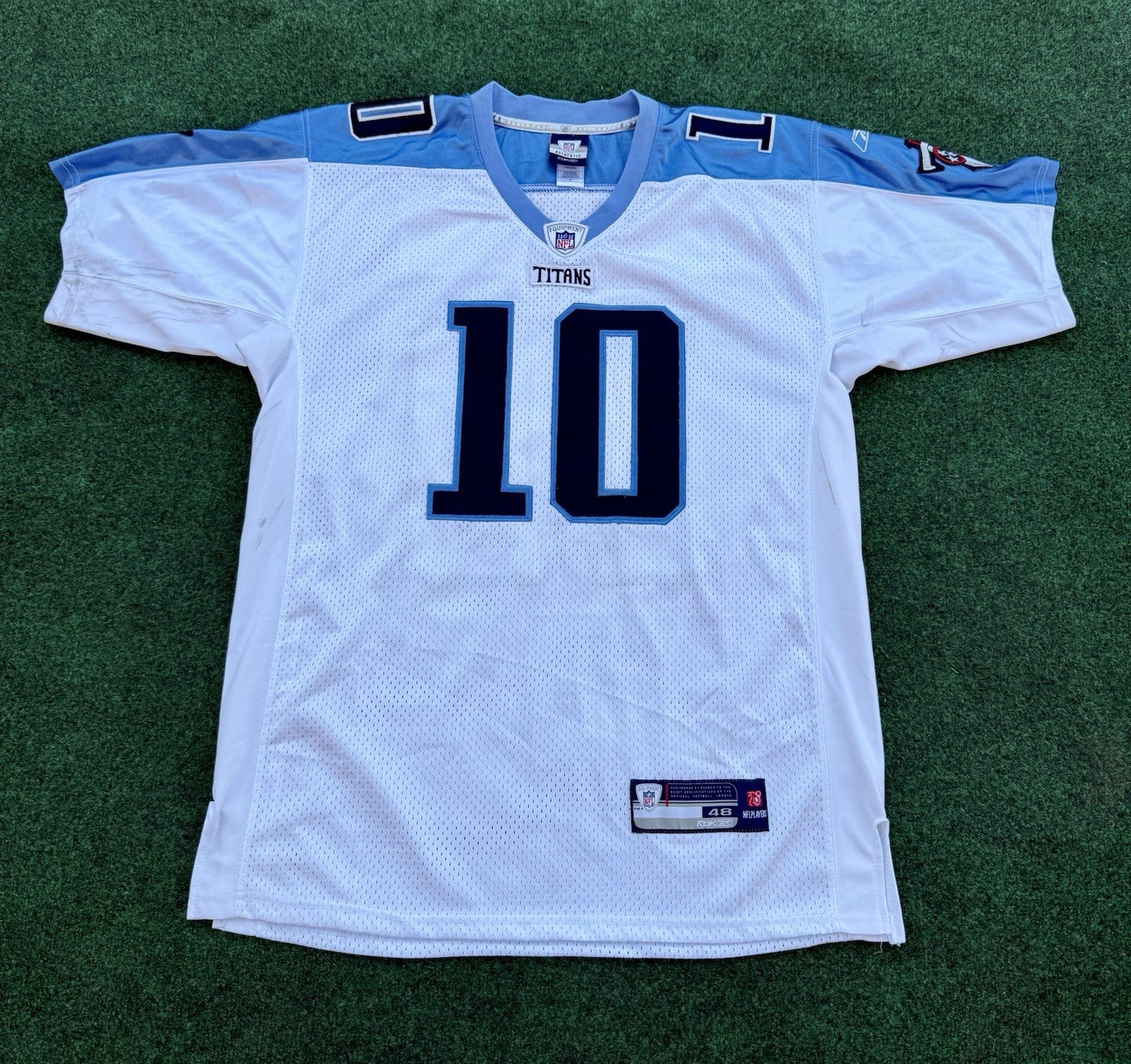The product is an authentic white Reebok jersey of Vince Young, the former quarterback for the Tennessee Titans in the National Football League (NFL). It is officially licensed by the league and designed specifically for men in size 48. The jersey is ideal for fans looking to show their support for the Titans during the regular season games. This product is 100% real and not a replica, making it a valuable collectible for football enthusiasts.
